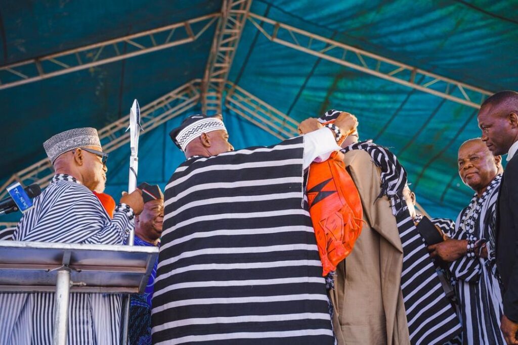 The historic conferment ceremony took place at the iconic J.S. Tarka Stadium in Gboko, Benue State, in the presence of the Tiv Traditional Council, dignitaries, political associates, traditional leaders, and well-wishers from across Nigeria.